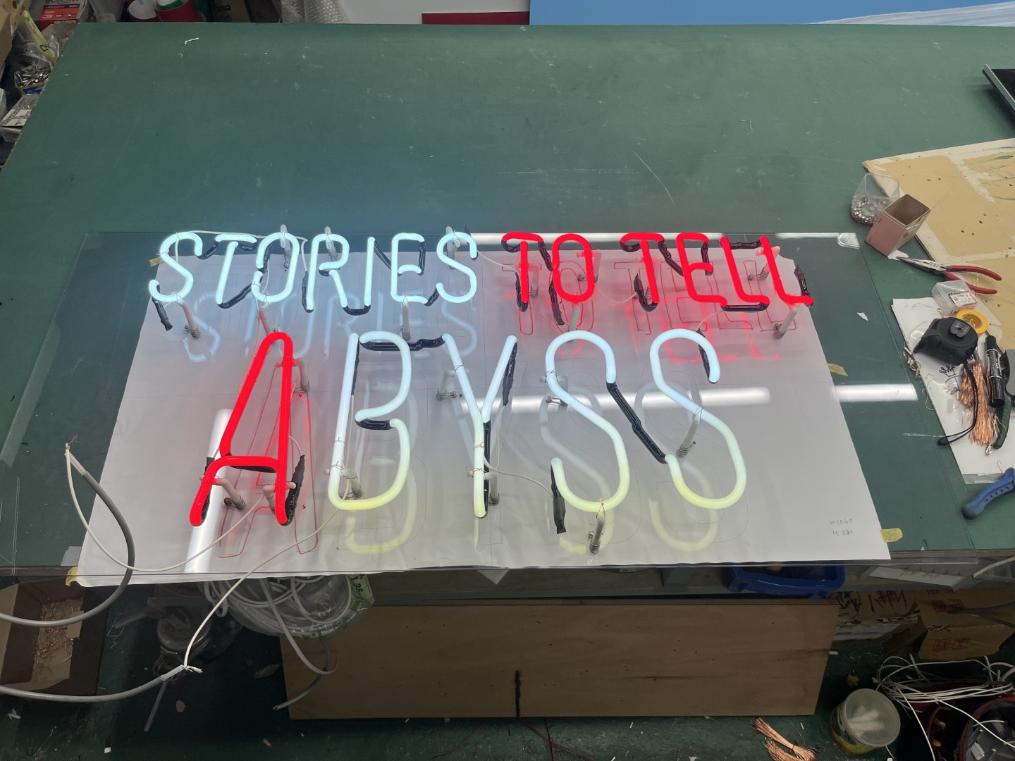 製作したネオンサインは、手作業による曲げ加工と丁寧な配線処理を経て完成。 設置時には店舗の照明環境や壁面の色を考慮し、ネオンの光が最も映える位置と角度を調整しました。