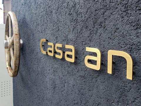 三重県菰野町にて金属切文字(真鍮)の施工事例