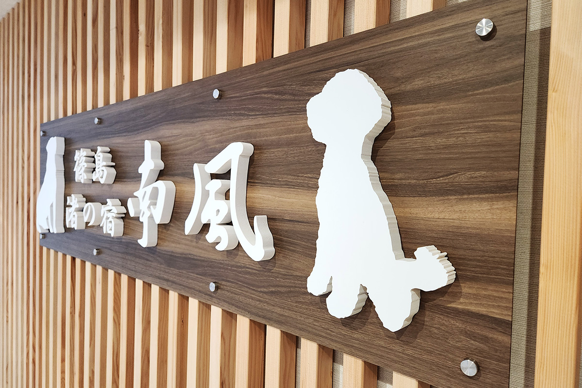 こちらの宿泊施設様は、愛犬と一緒に宿泊ができるそうで、看板にも可愛い犬のシルエットが使われていますよ。