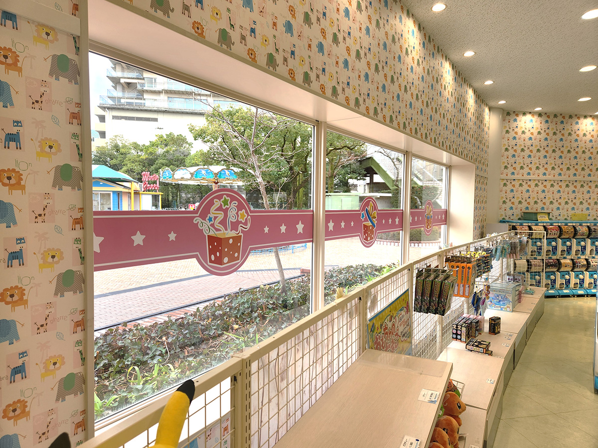 今回は、ナガシマスパーランド様内のキャラクターショップにて、窓ガラス面へのウィンドウサイン施工を行いました。